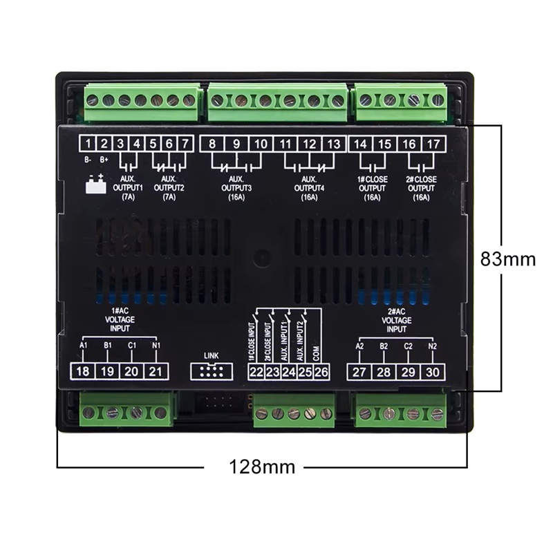 Módulo de control ATS del generador: Medición y control de tensión precisos para una gestión eficiente del sistema ATS del generador. Es un módulo inteligente de control de Transferencia integrado con función configurable, medición automática, pantalla LCD y comunicación digital. Combina la digitalización, la inteligencia y la creación de redes, lo que permite la automatización del proceso de medición y control, reduciendo errores de operación. Es el producto ideal para la transferencia de energía entre dos fuentes. Está hecho con el microprocesador en el núcleo, que puede medir con precisión voltajes trifásicos / monofásicos de 2 canales, detectar de manera precisa fallas de voltaje anormal (sobrevoltaje, bajo voltaje, pérdida de fase, sobre frecuencia, bajo frecuencia) y señales de control discretas. Este dispositivo está diseñado para operar bajo variadas aplicaciones en ATS (carga automática del sistema de transferencia), y puede usarse para interruptores ATS especializados, ATS con conector compuesto y ATS fabricados por interruptor de aire, etc. Tiene una estructura compacta, circuitos avanzados, cableado simple y alta confiabilidad, y puede ser ampliamente utilizado en dispositivos eléctricos